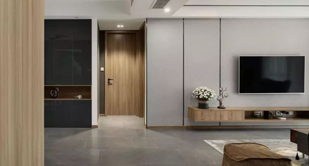 悅湖灣135㎡三室兩廳客廳電視新中式風格裝修案例效果圖