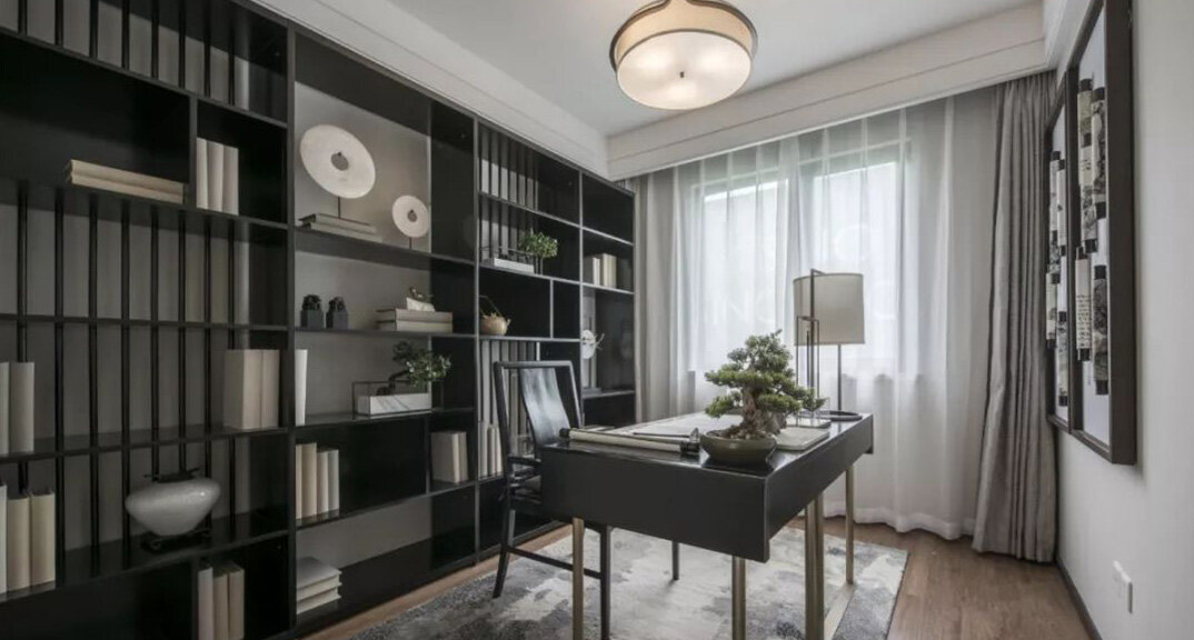 悅湖灣135㎡三室兩廳書房新中式風格裝修案例效果圖