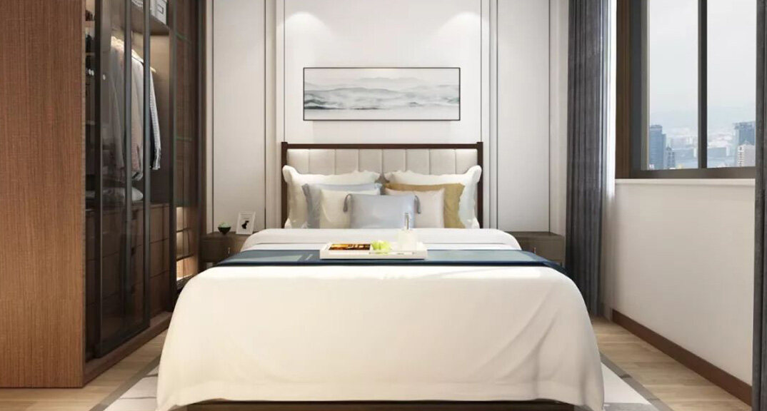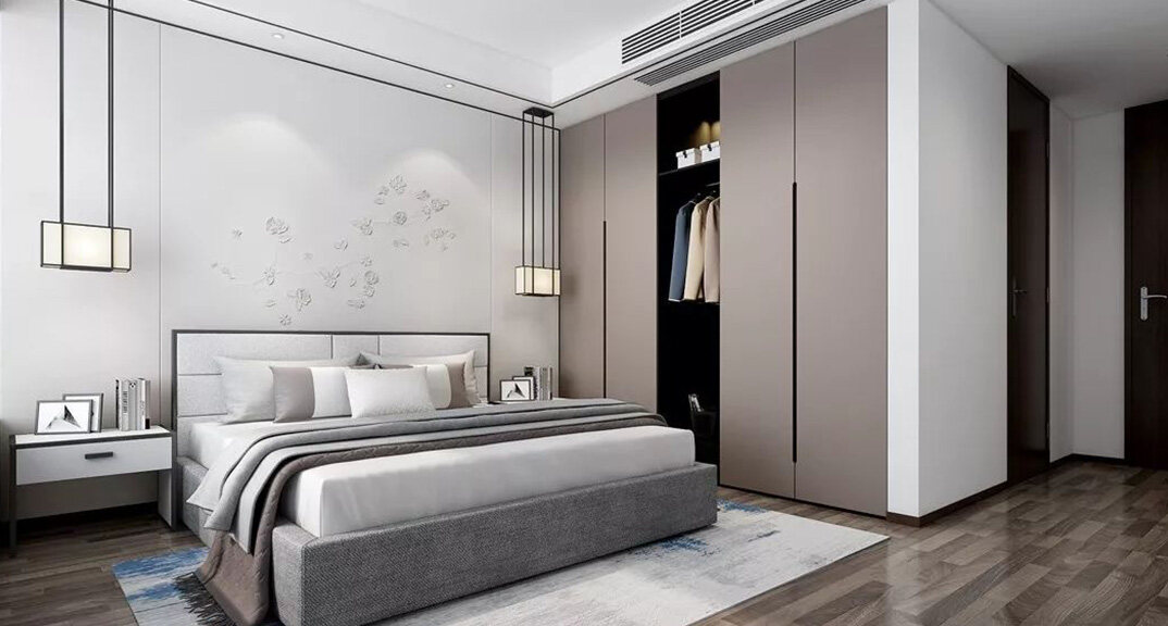 悅湖灣135㎡三室兩廳臥室新中式風格裝修案例效果圖