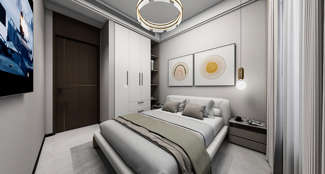 昆侖府150㎡疊拼上疊臥室現代輕奢風格裝修案例效果圖