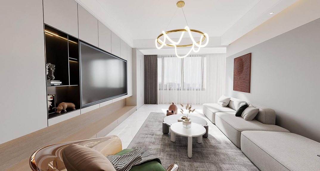 海韻廣場140㎡三室兩廳現代風格裝修vr全景案例