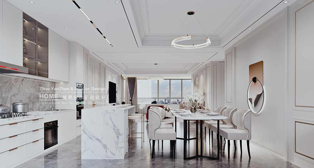 璞麗豪庭287㎡疊拼上疊餐廳美式輕奢風(fēng)格裝修案例效果圖