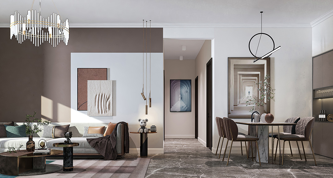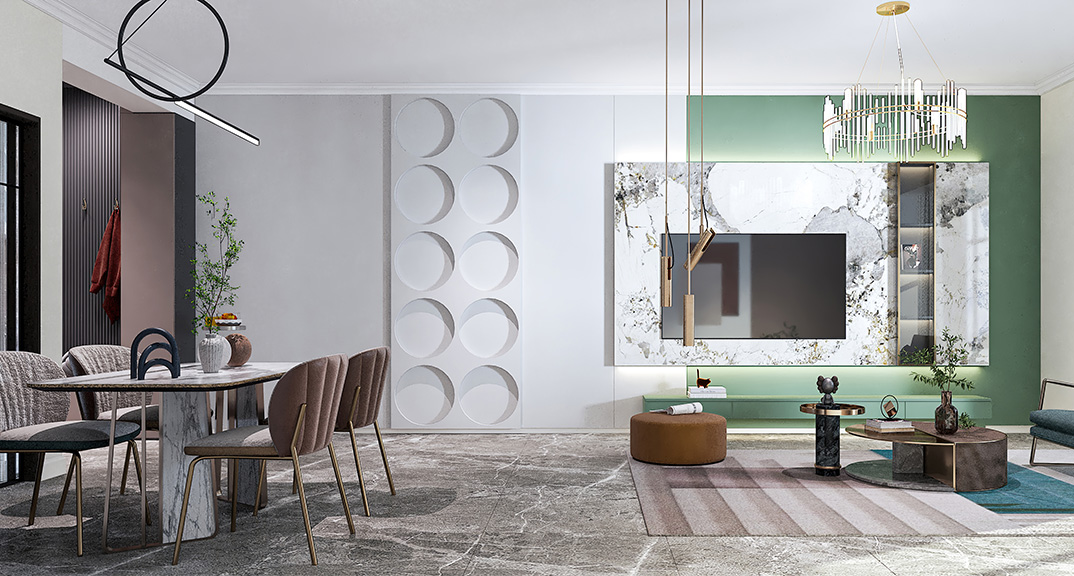 東岸世家110㎡三室兩廳客餐廳現(xiàn)代簡(jiǎn)約風(fēng)格裝修案例效果圖