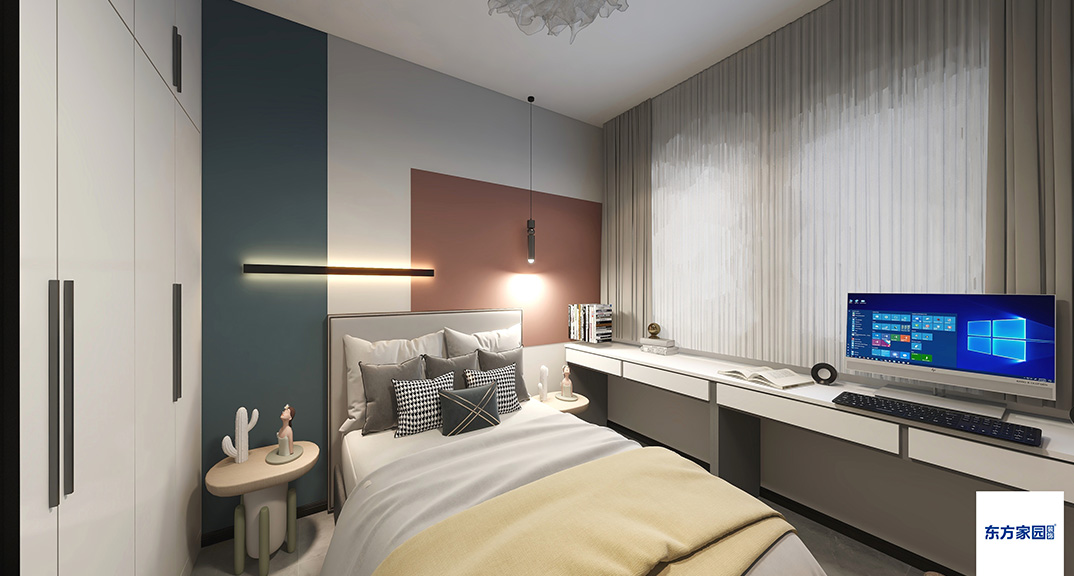 東岸世家110㎡三室兩廳客主臥現(xiàn)代簡(jiǎn)約風(fēng)格裝修案例效果圖