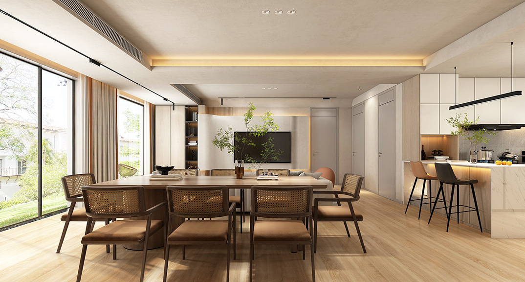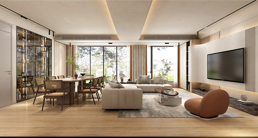 海清公館150㎡四室兩廳客餐廳中式古風風格裝修案例效果圖