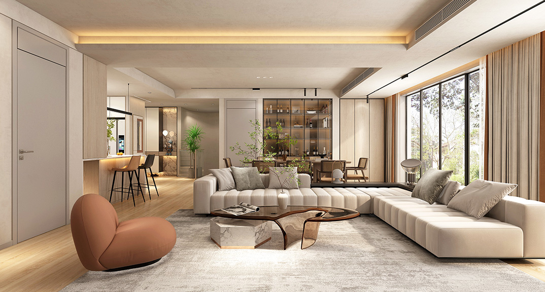 海清公館150㎡四室兩廳客廳中式古風風格裝修案例效果圖